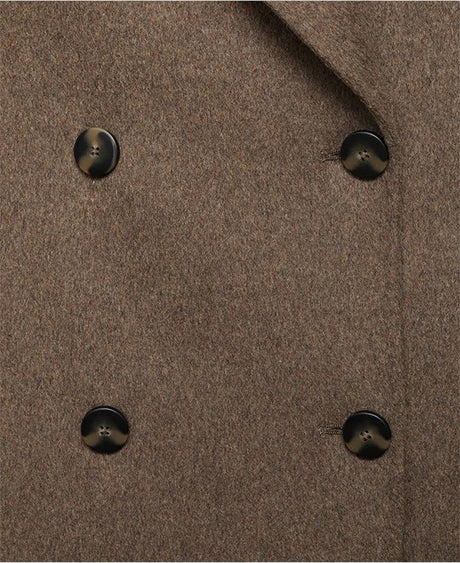 Designed with classic double-breasted button closure, a wide notched lapel collar, and a sophisticated neutral brown hue, this coat brings timeless style to your outerwear collection. The durable stitching and carefully tailored fit make it a reliable wardrobe investment that pairs seamlessly with jeans for casual outings, tailored trousers for workwear, or evening dresses for formal events.