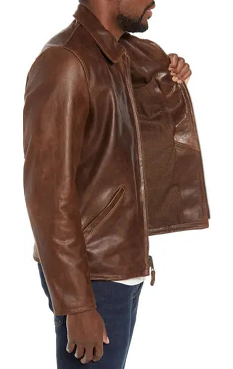 This premium full-grain leather jacket boasts a high-gloss finish that enhances its rugged appeal, making it a standout piece in any wardrobe. Designed for both style and comfort, it features a soft cotton lining that ensures a smooth fit, while the shoulder-broadening sunray seaming on the back adds a tailored touch for a flattering silhouette. This jacket combines timeless craftsmanship with modern detailing, perfect for casual and dressed-up occasions.