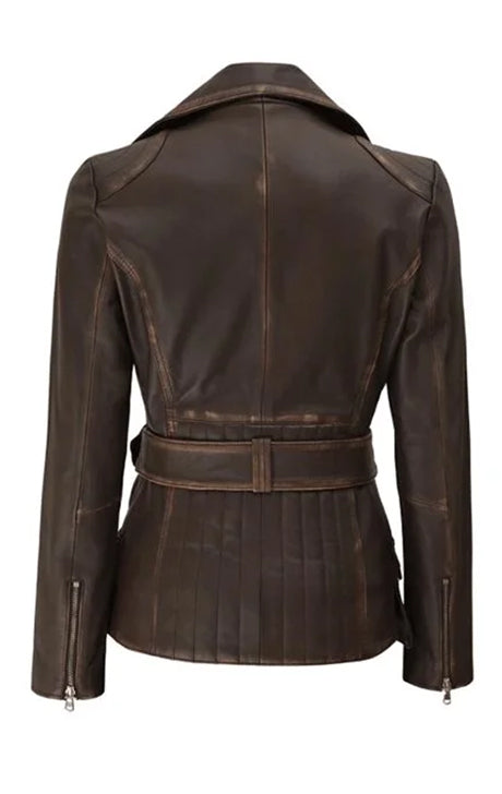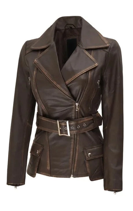 Whether you're heading out for a night in the city or a long countryside ride, the Distressed Brown Belted Leather Jacket delivers the perfect mix of attitude, elegance, and practicality — a true wardrobe essential for every leather lover.