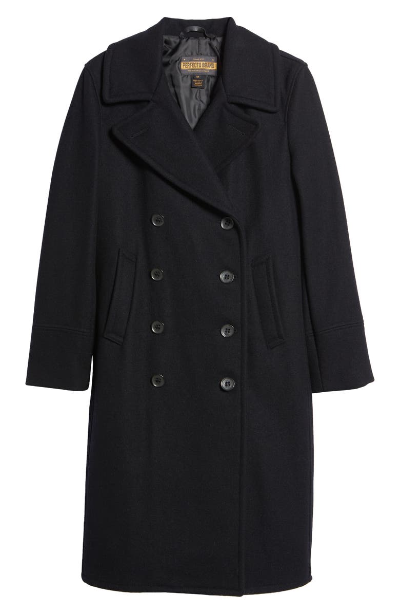 Uniformly styled with a top-brass ranking, this handsome double-breasted long coat is structured from dense wool with clean lines and a layerable fit.